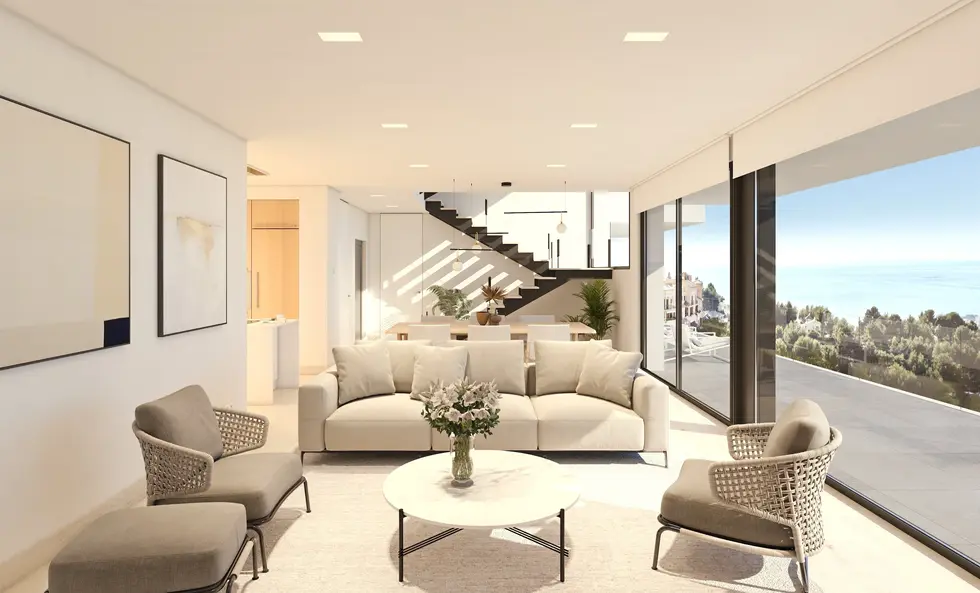 Nieruchomość, z widokiem 360° na morze i panoramę Benidormu, znajduje się w uprzywilejowanej części Altea la Vella w Azure Altea Homes, jednej z najbardziej charakterystycznych enklaw północnego wybrzeża Costa Blanca. Architektura o nowoczesnych i funkcjonalnych liniach została zaprojektowana tak, aby przestrzenie mogły oddychać i otwierać się na duży taras i basen. Światło, powietrze, morze i roślinność sprawiają, że styl dostosowuje się do krajobrazu i integruje się z nim.